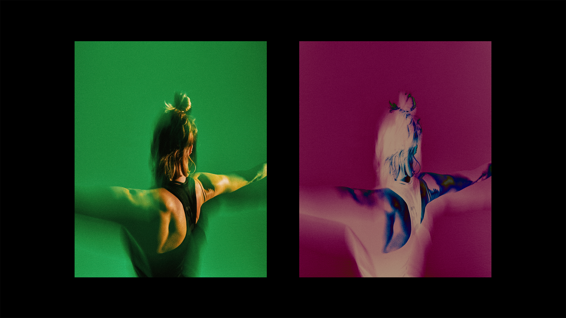 In cooperation with photographer Daniil Lavrovski, we chose to shoot colourful and abstract photography of models with a low shutter-speed, to create an energetic image that seems to be in constant movement.