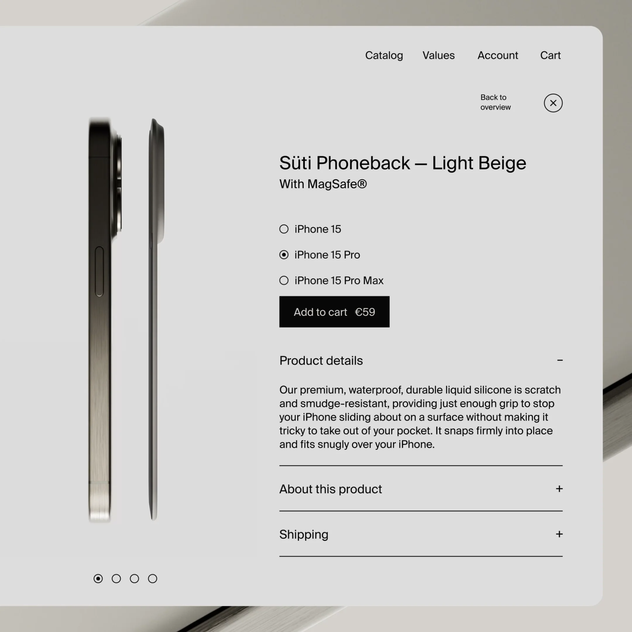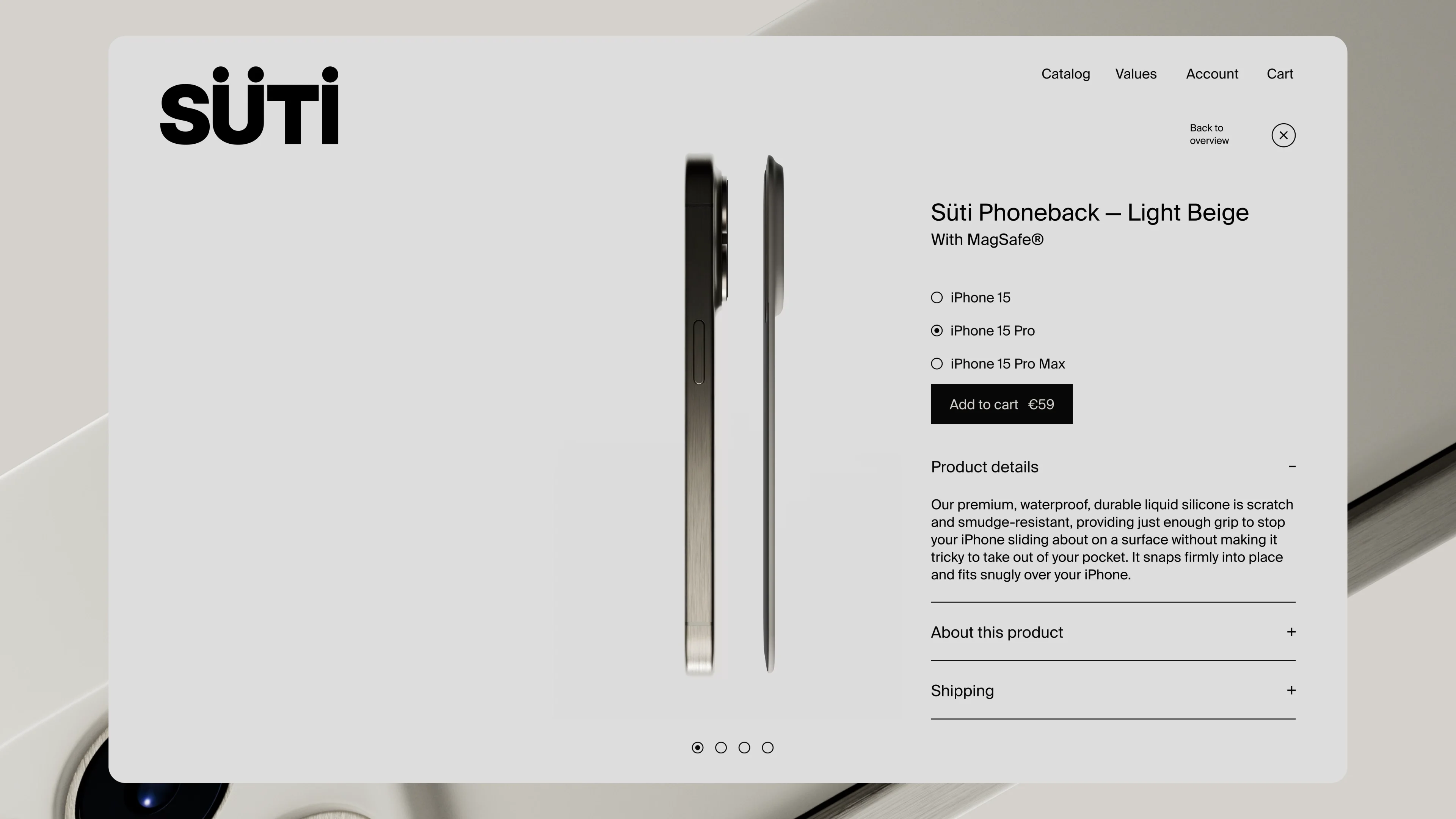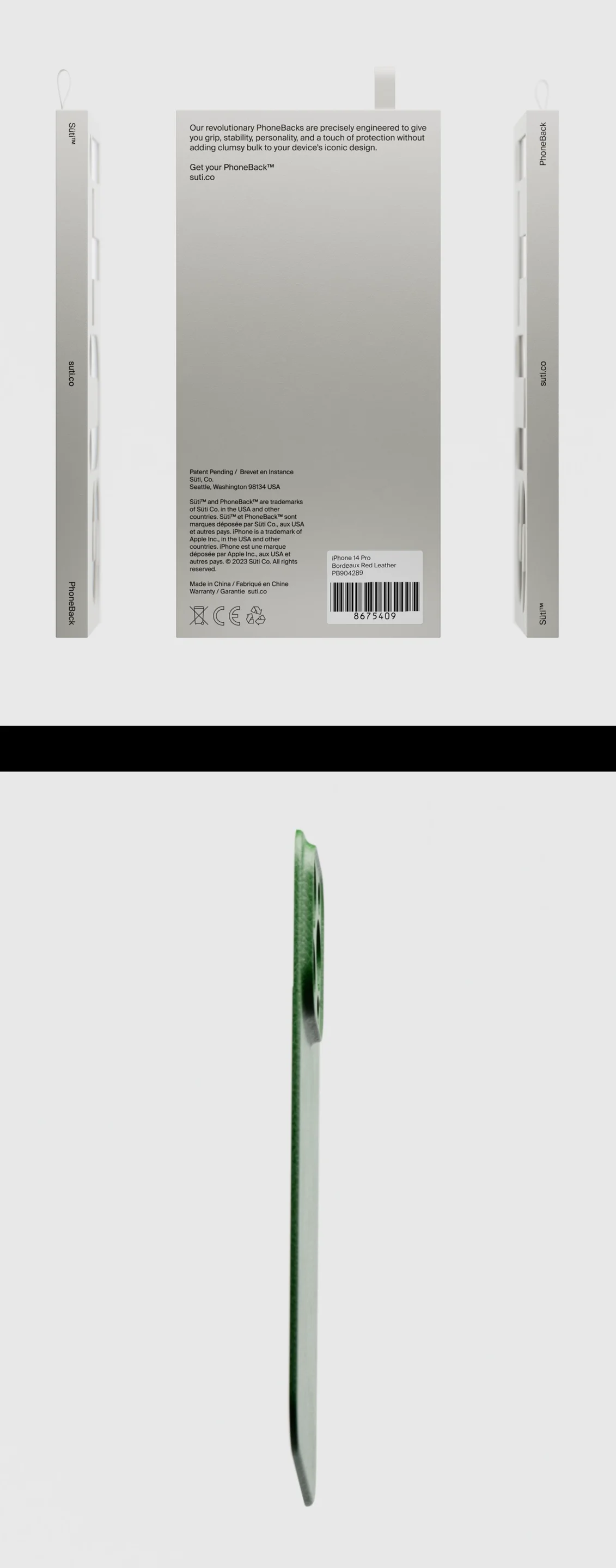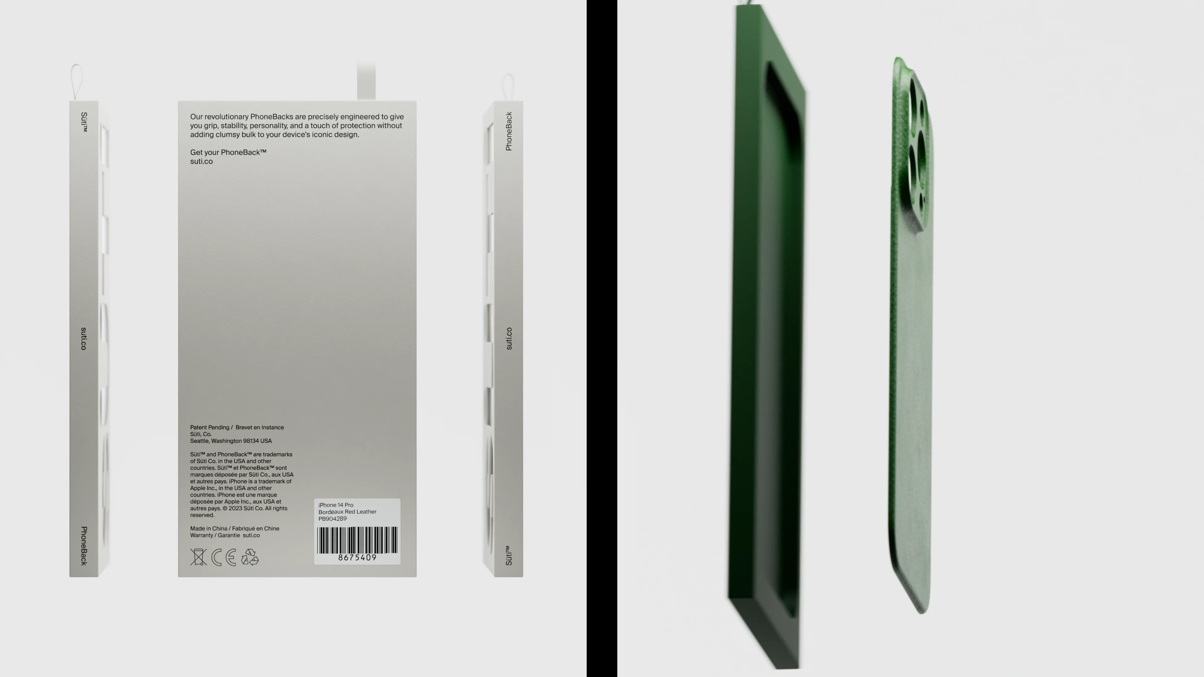 From the start, the audience was clear - people that value the design of the iPhone, and find phone cases a clumsy addition to a beautiful product. For the name, we landed on “Süti” on day 1 - it’s the Swahili word for “suit” - a nod to the product being a stylish way to dress your phone. However, as it’s not a case, we also needed a new product descriptor - thus ‘the Phoneback’ was born. Both a descriptor & CTA, it became the base for the tagline, “Ditch the case. Get your PhoneBack.”