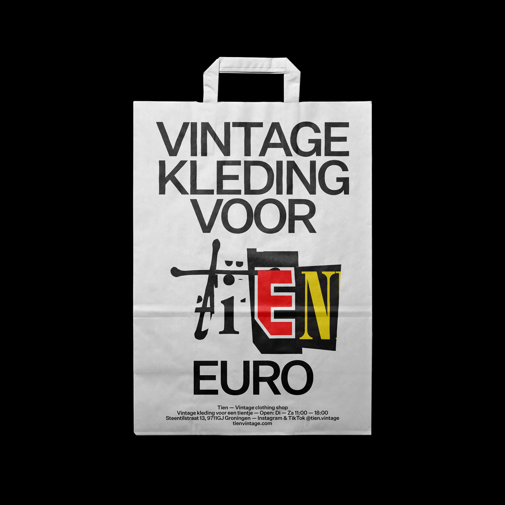 Tien (Ten) is a Dutch second-hand clothing store where every piece is cheekily priced at just ten euros. Our rebrand starts from the insight that the world doesn’t need more clothes, just better use of what’s already there. Then why buy new clothing if there’s already so many perfectly good pieces out there. Why design a new logo if there’s already so many logos out there.