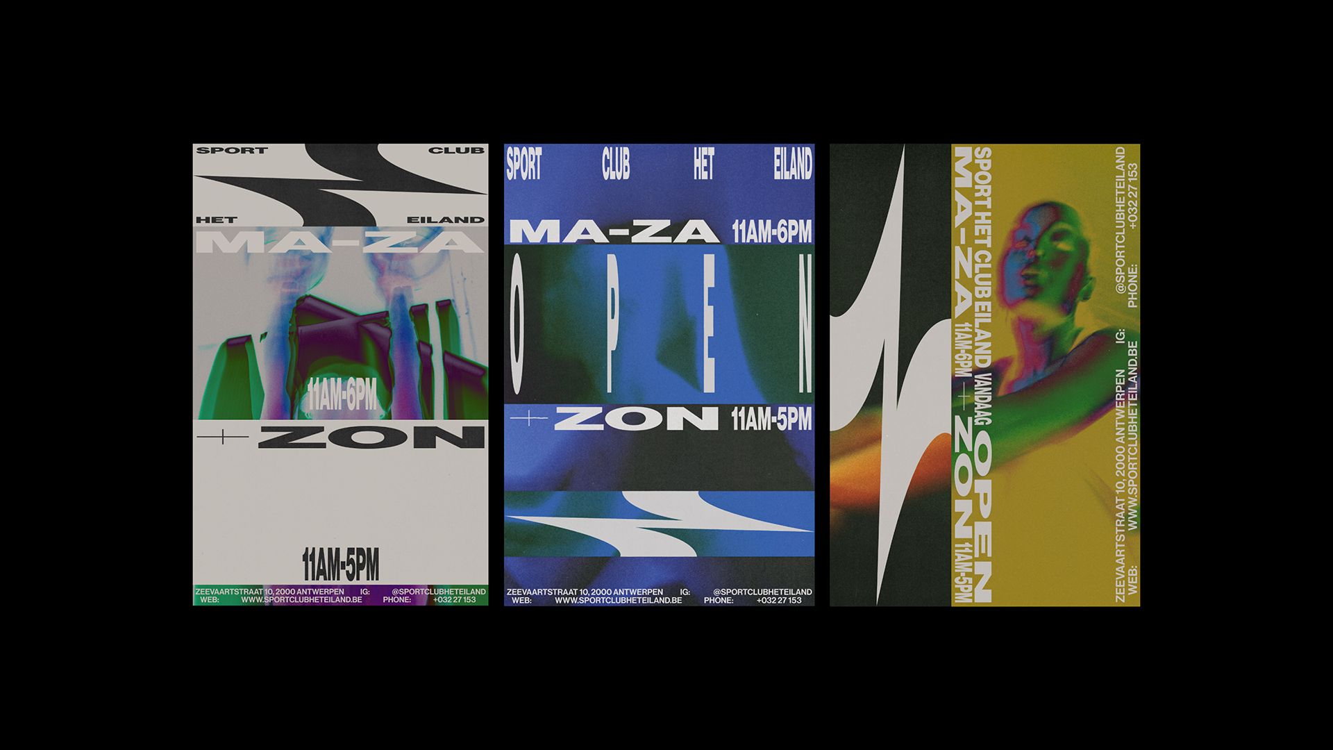 In addition to the photography and graphics, we implemented various filter frames that can be positioned on top of the imagery and identity to create a negative-photo effect. This gives a ‘heat-wave’ effect that is able to create unique colour schemes. The combination of these different facets creates a modern, dynamic and energetic look perfect for Antwerp’s favourite gym.