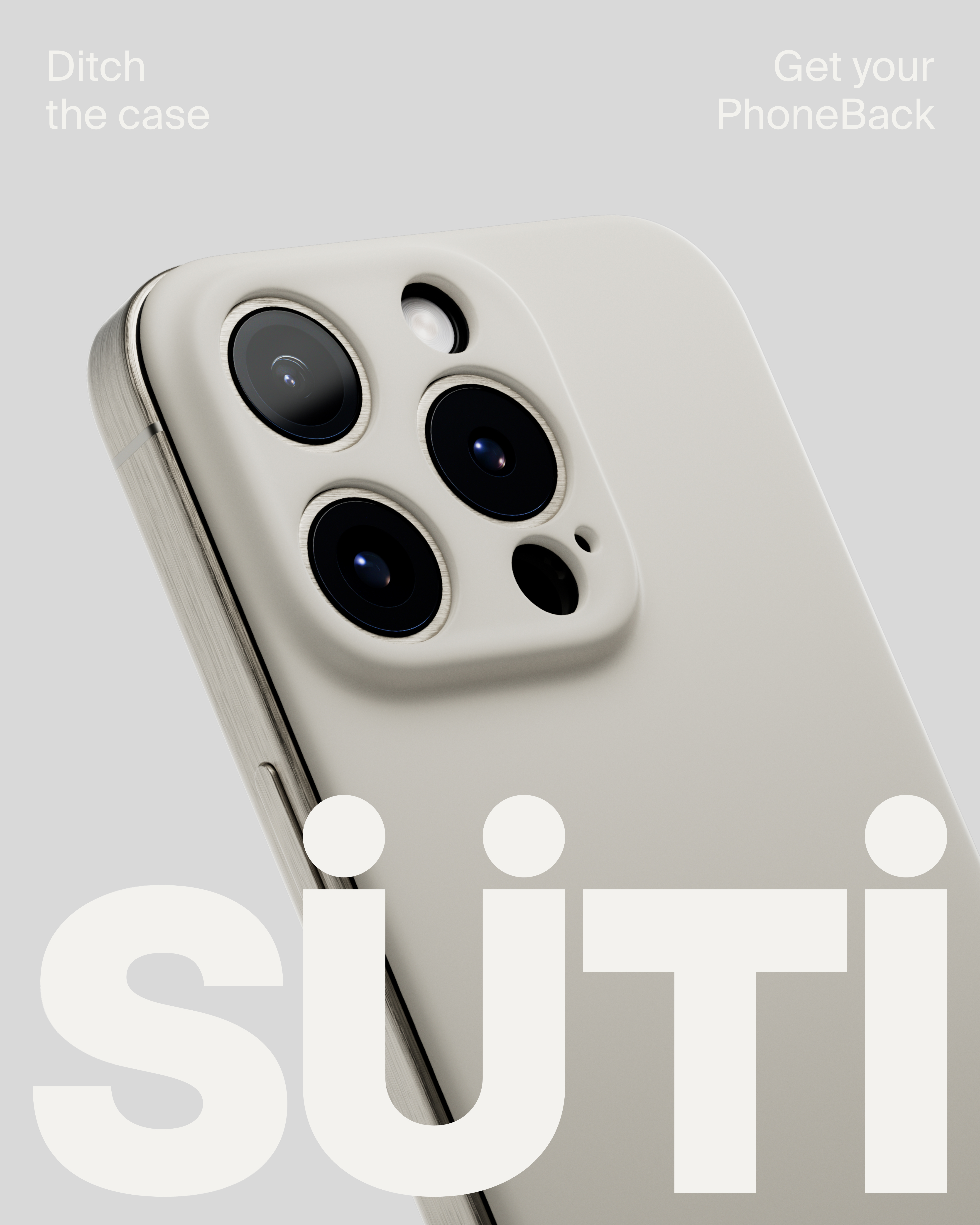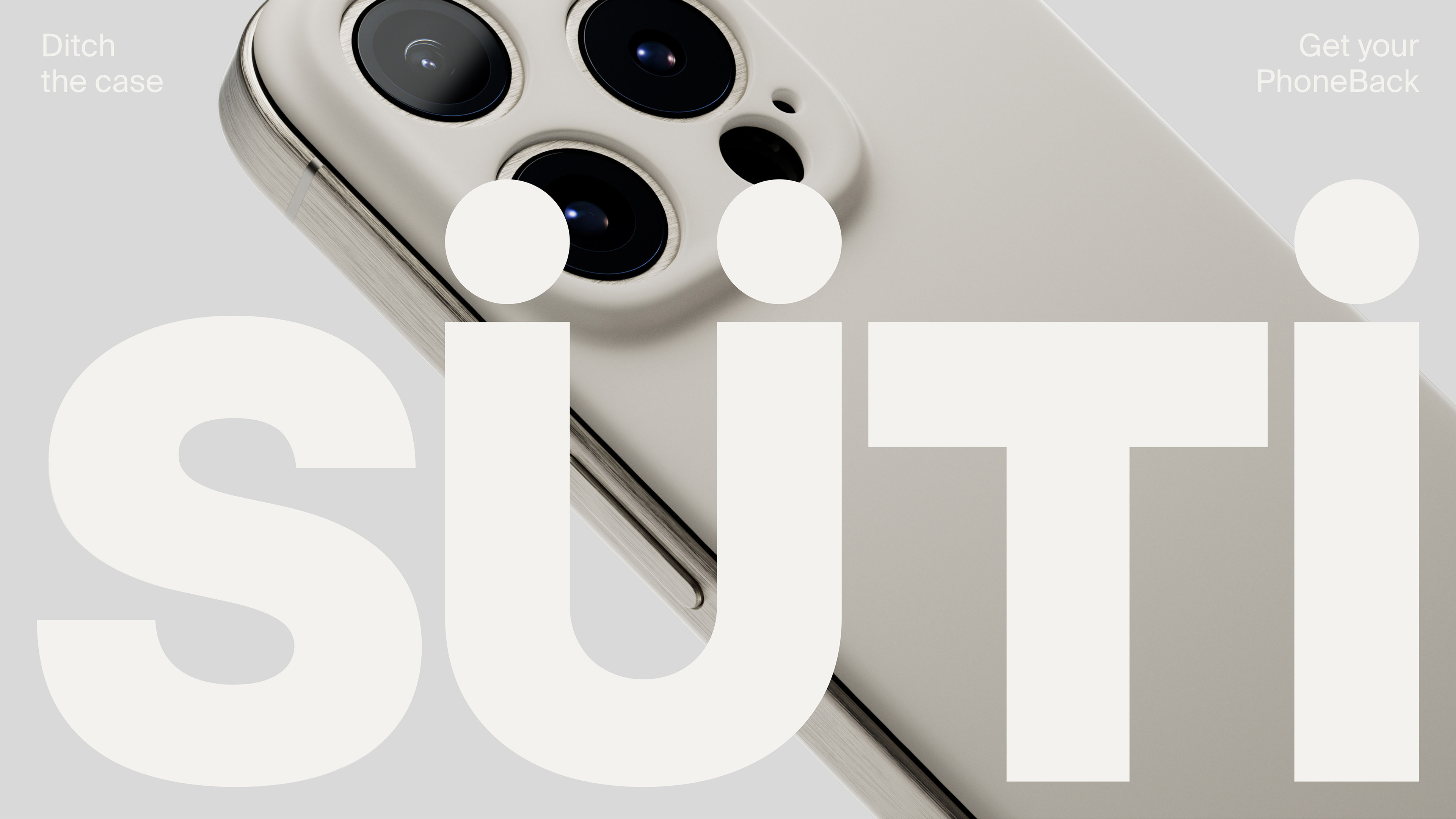 From the start, the audience was clear - people that value the design of the iPhone, and find phone cases a clumsy addition to a beautiful product. For the name, we landed on “Süti” on day 1 - it’s the Swahili word for “suit” - a nod to the product being a stylish way to dress your phone. However, as it’s not a case, we also needed a new product descriptor - thus ‘the Phoneback’ was born. Both a descriptor & CTA, it became the base for the tagline, “Ditch the case. Get your PhoneBack.”
