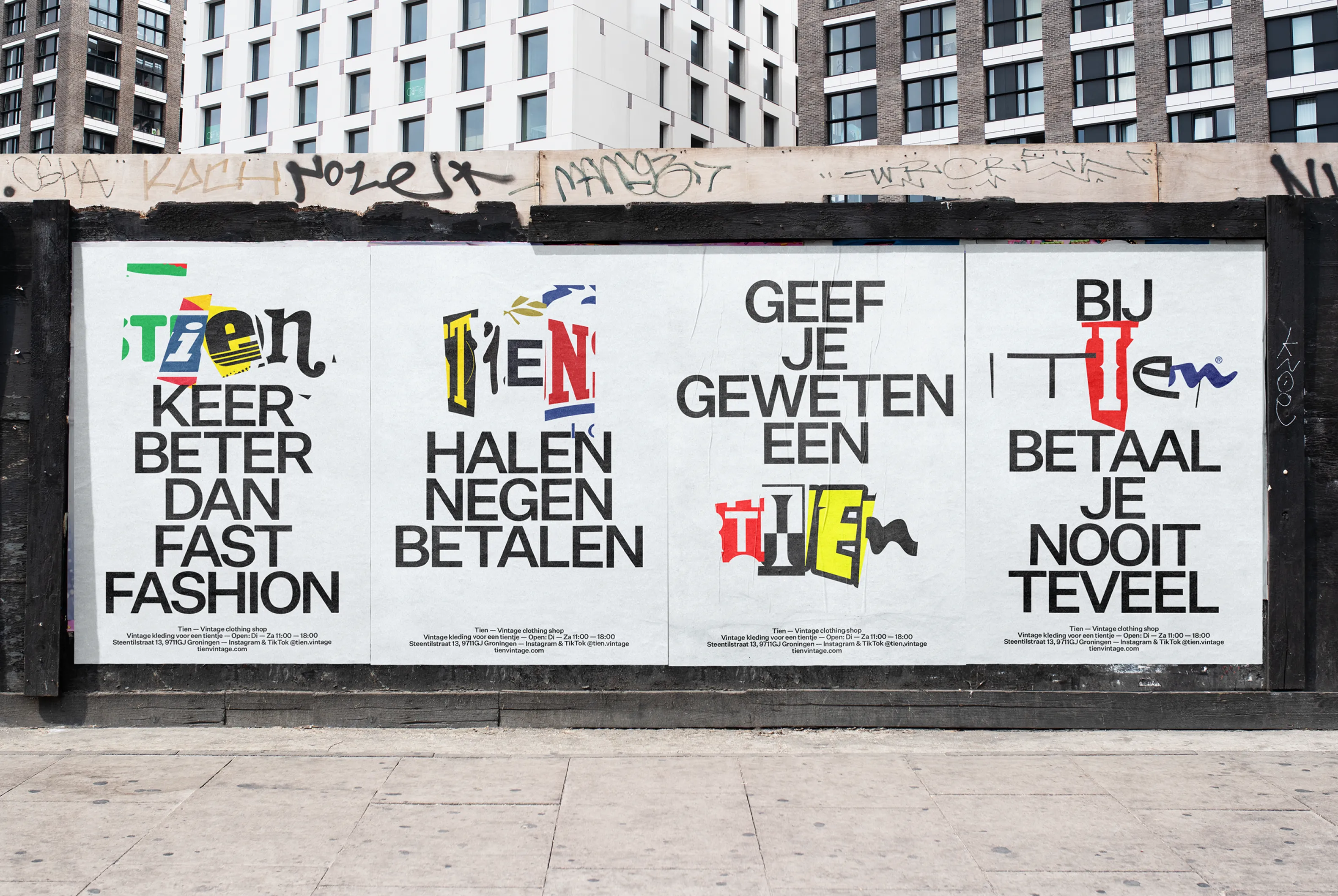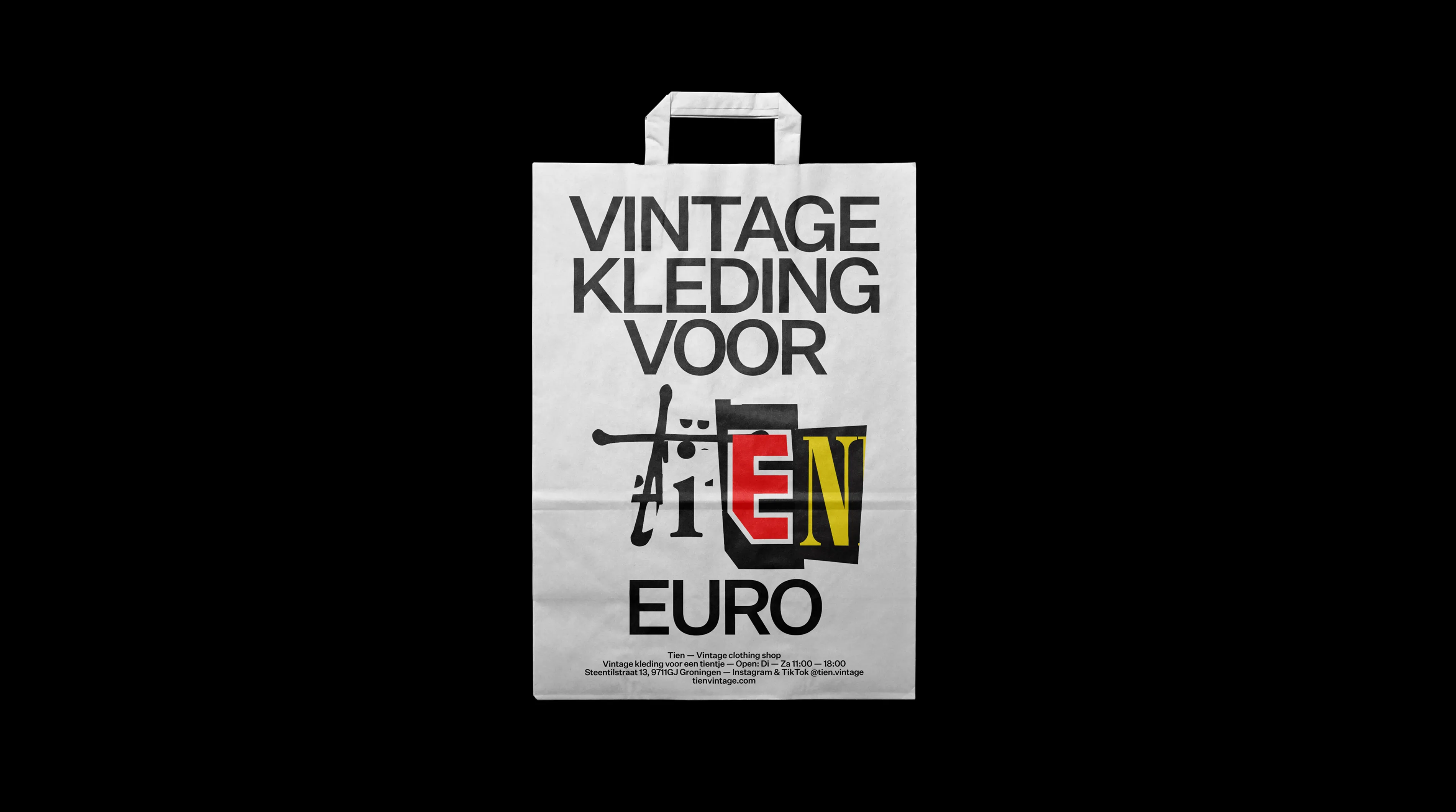 Tien (Ten) is a Dutch second-hand clothing store where every piece is cheekily priced at just ten euros. Our rebrand starts from the insight that the world doesn’t need more clothes, just better use of what’s already there. Then why buy new clothing if there’s already so many perfectly good pieces out there. Why design a new logo if there’s already so many logos out there.