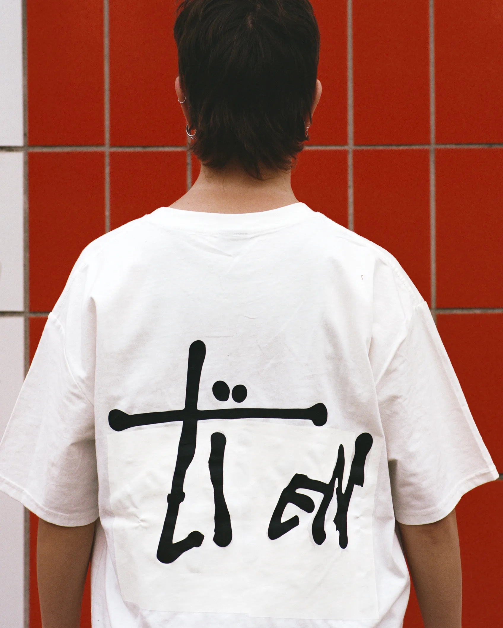 The direction was evident: reuse only what exists. An eclectic collage of letters, chaotically cut from brands found in the ever-growing mountains of discarded clothing, forms a logo that keeps evolving. For this reason, we intentionally kept the identity calm: the unapologetic logo is paired with Klim Type’s Untitled Sans Medium, set in rich black on white and light grey.